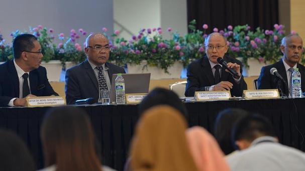 7月30日,馬航370航班客機安全調查組負責人郭師傳在馬來西亞普特拉賈亞舉行的新聞發布會上講話。7月30日,馬航370航班客機安全調查組負責人郭師傳(右二)在馬來西亞普特拉賈亞舉行的新聞發布會上講話。