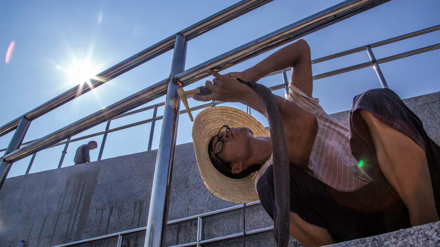 7月30日,在山東省淄博市沂源縣悅莊鎮一建設工地,一名工人在搬運鋼筋。建筑工地的勞動者不畏酷暑,堅守崗位,為城市的建設奉獻汗水。建筑工地的勞動者不畏酷暑,堅守崗位,為城市的建設奉獻汗水。