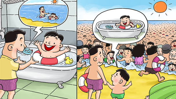 氣溫爆表,海濱爆擠,在海邊游泳還不如自家浴缸來得舒服。