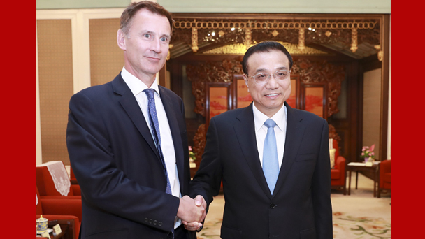 7月30日,國務院總理李克強在北京中南海紫光閣會見來華出席第九次中英戰略對話的英國外交大臣亨特。新華社記者丁海濤攝