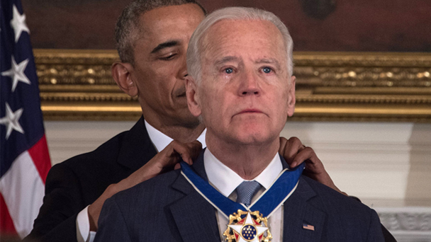 1月12日,美國總統奧巴馬在白宮為副總統拜登頒發了總統自由勛章。