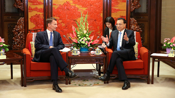 國務院總理李克強7月30日下午在中南海紫光閣會見來華出席第九次中英戰略對話的英國外交大臣亨特。