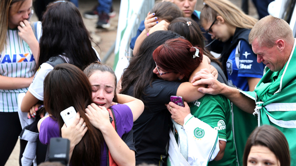 當?shù)貢r間2016年11月29日,巴西足球俱樂部沙佩科恩斯隊遭遇空難。30日,大批球迷集結俱樂部球場悼念,不少人甚至相擁痛哭。