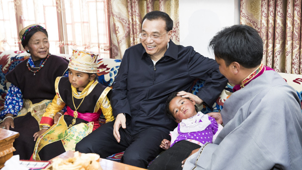 李克強(qiáng)總理7月25日到西藏自治區(qū)考察。首先來到林芝,一下飛機(jī)直奔米林縣羌納鄉(xiāng)西嘎門巴村。這是一個(gè)移民村,村民由貧困地區(qū)搬遷而來。李克強(qiáng)走進(jìn)村民貢桑家中,和他們一家6口坐在沙發(fā)上拉起家常。