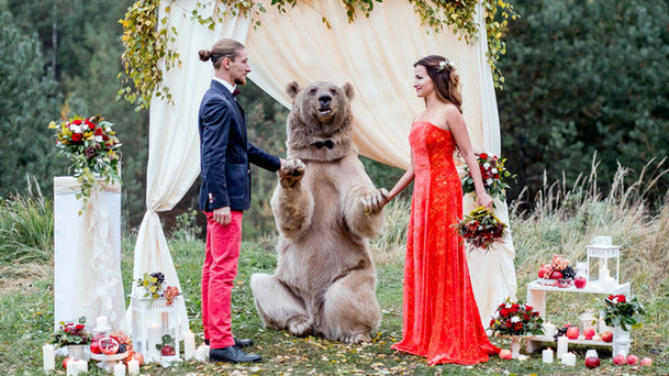 同為30歲的丹尼斯和內爾亞來自俄羅斯莫斯科,這對夫婦舉辦了一場非常有意思又難忘的婚禮。他們邀請了一頭大棕熊斯捷潘(Stepan)參加他們的婚禮,充當他們婚禮的“見證人”。
