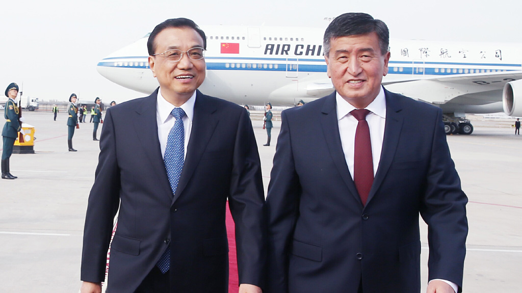 李克強總理2日下午乘專機抵達比什凱克瑪納斯國際機場,開始對吉爾吉斯斯坦進行正式訪問,并出席上合組織總理會。吉總理熱恩別科夫到機場迎接。禮兵沿紅地毯兩側列隊,行注目禮。吉青年獻上鮮花并請李克強總理品嘗傳統風味點心。