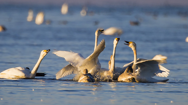 天氣轉涼,大天鵝、鴻雁等上百萬只候鳥從貝加爾湖遷徙到這里,待湖面結冰后再飛去鄱陽湖越冬。
