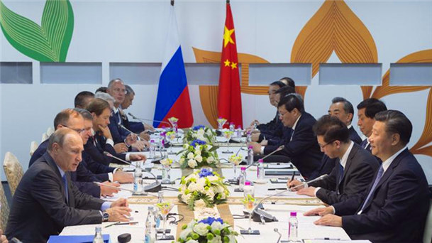 國家主席習近平15日在印度果阿會見俄羅斯總統普京。