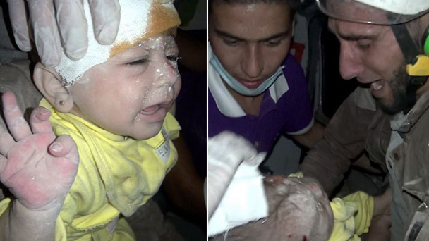 敘利亞:30天寶寶廢墟中獲救 救援人員淚奔