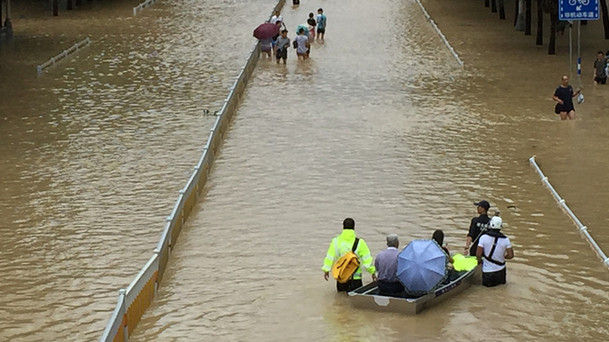 9月28日,今年第17號臺風“鲇魚”以臺風級登陸福建省泉州市惠安縣沿海,福州遭強降雨侵襲,街道被洪水淹沒。
