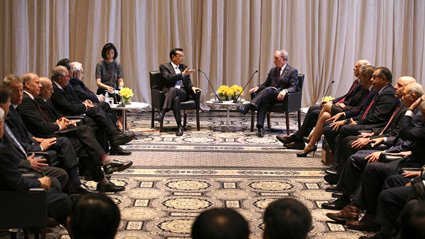 國務院總理李克強當地時間20日上午在紐約下榻飯店同美國經濟、金融、智庫、媒體等各界人士座談,就中美關系及經貿合作等共同關心的問題交流互動。