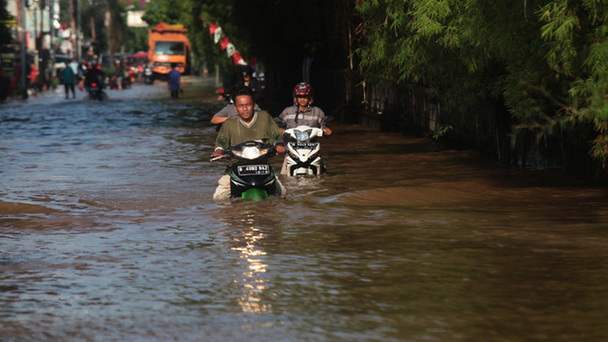 印尼首都遭暴雨襲擊引發(fā)洪水 街道被淹沒
