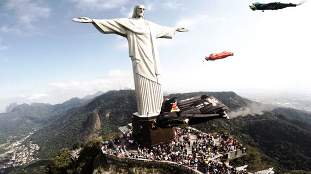 7月23日,紅牛“里約之翼”在巴西里約熱內盧舉辦。來自美國、巴西、委內瑞拉的5名世界頂尖翼裝飛行運動員成功進行兩次翼裝飛行編隊“飛躍基督像”特技飛行表演活動。這5名翼裝飛行員分別是來自美國的杰布·克里斯、格拉漢姆·迪金森,巴西的卡尼·路吉、加布里埃爾·洛特和來自委內瑞拉的卡洛斯·布萊斯。