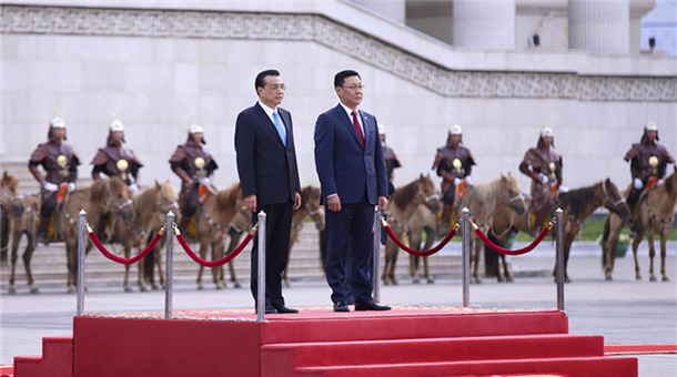 國務(wù)院總理李克強(qiáng)當(dāng)?shù)貢r(shí)間14日上午在烏蘭巴托國家宮會(huì)見蒙古國總統(tǒng)額勒貝格道爾吉。額勒貝格道爾吉表示,李克強(qiáng)總理到訪前在蒙古國主流媒體發(fā)表署名文章,在蒙各界產(chǎn)生很好反響。