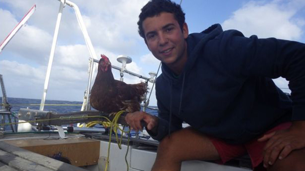 據英國廣播公司6月13日報道,2014年5月,法國小伙兒吉雷克帶著4、5月大的莫妮卡從西班牙加納利群島起航,開始了自己的環球航行。