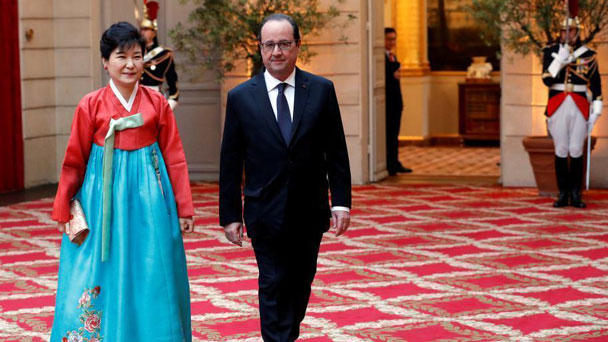 樸槿惠穿韓服出席法國國宴 氣質端莊大方