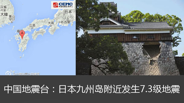 中國地震臺網正式測定:04月16日00時25分在日本九州島(北緯32.75度,東經130.80度)發生7.3級地震,震源深度10千米。