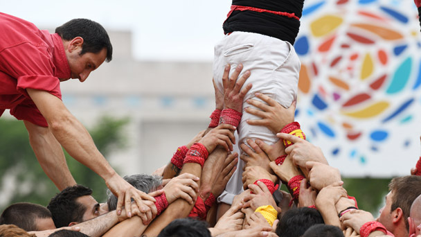 7月6日,在美國首都華盛頓,演員在民俗節(jié)上表演疊羅漢。2018史密森學會民俗節(jié)分為6月27日至7月1日、7月4日至8日兩個階段在華盛頓舉行。