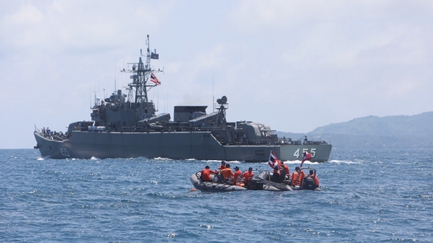 兩艘載有127名中國游客的船只在泰國當?shù)貢r間7月5日返回普吉島途中,突遇特大暴風雨發(fā)生傾覆。新華社記者秦晴攝  7月7日,在泰國普吉,救援人員在游船傾覆附近的海域進行搜救。