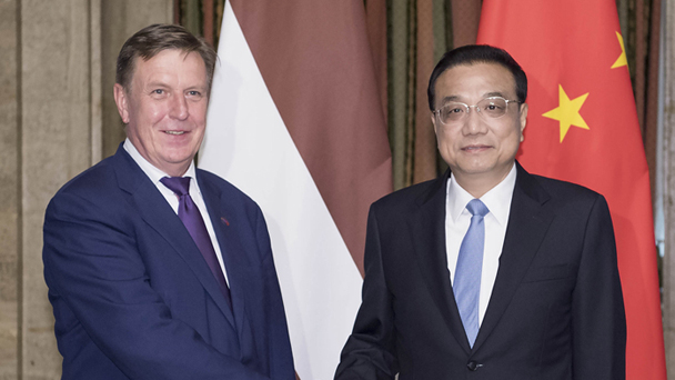 當?shù)貢r間7月7日下午,國務院總理李克強在索非亞下榻飯店會見拉脫維亞總理庫欽斯基斯。