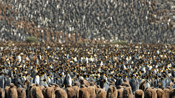 一名以色列攝影師近日拍下了一組壯觀的圖片,畫面顯示超過15萬的成年王企鵝聚集在一起,給新生企鵝取暖防止其凍死。