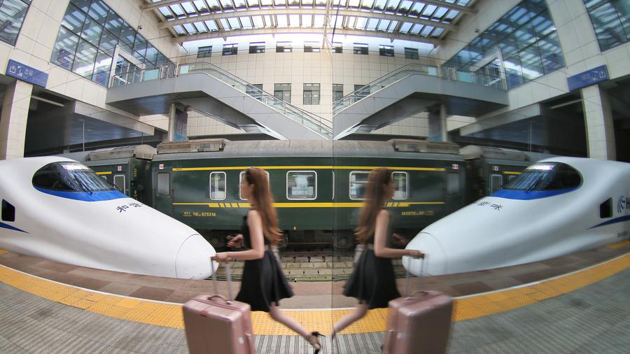 6月30日,旅客在山東煙臺火車站乘車。暑運(yùn)期間,全國鐵路預(yù)計發(fā)送旅客6.47億人次,同比增加4590萬人次,增長7.6%,日均發(fā)送旅客1043萬人次。新華社發(fā) 唐克 攝 6月30日,在由煙臺開往榮成的D6093次列車上,列車長張新新幫助一位乘坐輪椅的老人乘車。