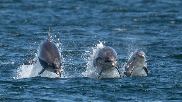 蘇格蘭海豚母子繹驚艷海上“三人舞” 近日,蘇格蘭Chanonry Point這里有三頭貪玩的寬吻海豚,它們閑來無事自娛自樂,紛紛出水炫技,奉上了一場精美絕倫的海上三人舞。