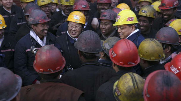 李克強總理5日來到山西焦煤集團官地礦,下井前遇到剛出井的礦工。在滿臉黝黑的礦工人叢中,總理緊緊握著他們的手說:“你們自己常年在黑暗的井下工作,卻照亮了他人。有人說你們是煤黑子,我說你們是煤亮子。煤炭工人不僅是山西的脊梁,也是國家的脊梁。”