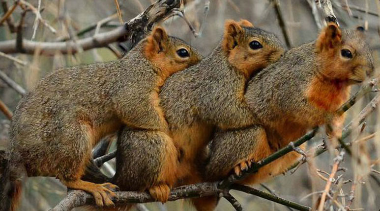 英國(guó)52歲攝影師托馬斯在美國(guó)蒙大拿州度假時(shí),拍攝到3只可愛(ài)松鼠抱在一起取暖的照片,隨即成為網(wǎng)上熱話。