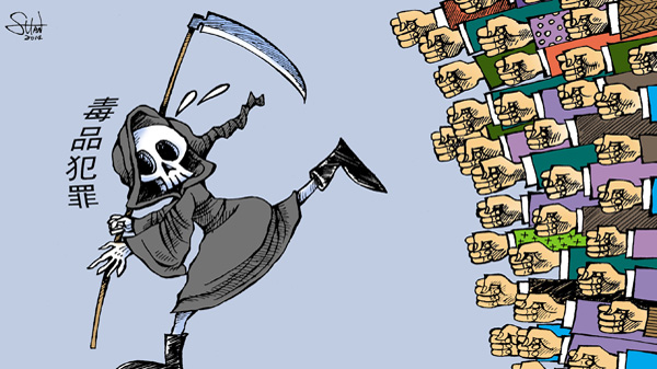 全世界人民團(tuán)結(jié)起來趕走毒品犯罪。