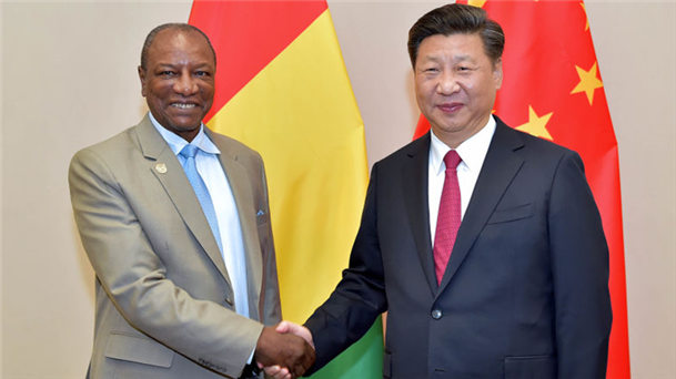 國家主席習近平3日在約翰內斯堡會見幾內亞總統孔戴。