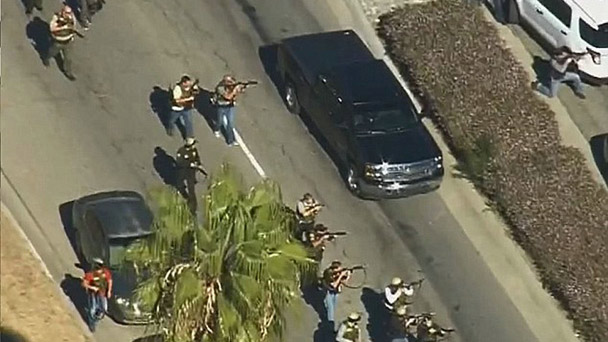 2日上午,美國南加州地區圣貝納迪諾縣發生大規模槍殺事件。最新消息顯示,至少3名兇手在逃。