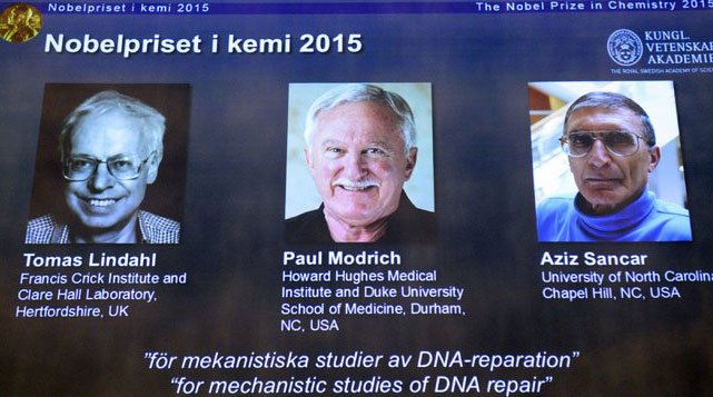 三名科學(xué)家獲2015年諾貝爾化學(xué)獎