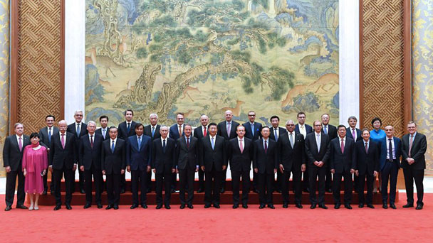 6月21日,國家主席習近平在北京釣魚臺國賓館會見來華出席“全球首席執(zhí)行官委員會”特別圓桌峰會的知名跨國企業(yè)負責人,并同他們座談交流。6月21日,國家主席習近平在北京釣魚臺國賓館會見來華出席“全球首席執(zhí)行官委員會”特別圓桌峰會的知名跨國企業(yè)負責人,并同他們座談交流。
