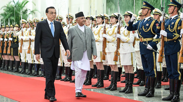 國務院總理李克強21日下午在人民大會堂同來華進行正式訪問的尼泊爾總理奧利舉行會談。