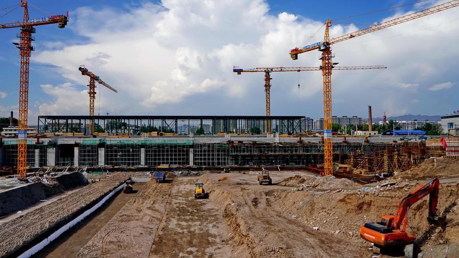 6月11日,工人在京張高鐵張家口市宣化北站施工。京張高鐵還將與正在建設(shè)的呼(呼和浩特)張(張家口)鐵路客運專線工程和張(張家口)大(大同)城際專線工程相連接,一張快速客運網(wǎng)將在華北北部形成。