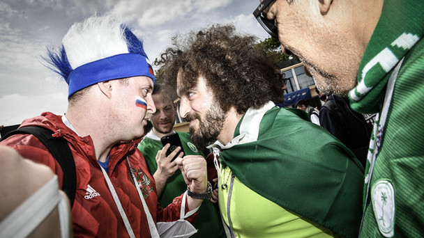 俄羅斯莫斯科當(dāng)?shù)貢r間6月14日中午時分,盧日尼基球場附近聚集了大批球迷,狂歡吶喊迎接即將開踢的2018世界杯。