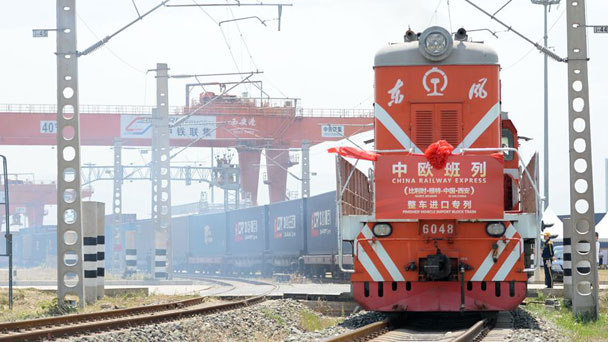 6月13日,裝載著進(jìn)口沃爾沃汽車的“長安號”中歐班列抵達(dá)西安港西安鐵路集裝箱中心站。