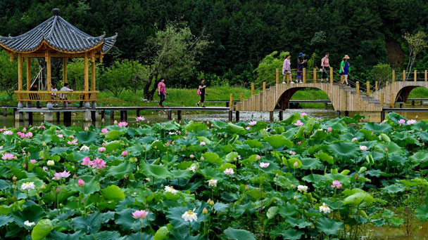 近年來(lái),福建省武夷山市五夫鎮(zhèn)在鄉(xiāng)村振興中把發(fā)展特色種植業(yè)和旅游產(chǎn)業(yè)結(jié)合起來(lái),大面積種植荷花,吸引眾多游客前來(lái)觀賞,有效帶動(dòng)鄉(xiāng)村經(jīng)濟(jì)的發(fā)展。