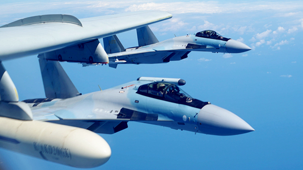 當日,空軍新聞發言人申進科在華南某機場發布消息,空軍于11日組織東部、南部戰區空軍協同行動,出動轟炸機、偵察機雙向繞飛臺島巡航。