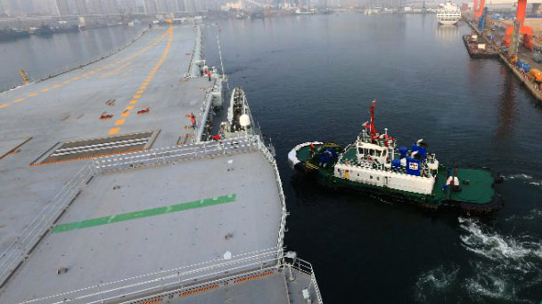 今天上午7時許,我國第二艘航母從大連造船廠碼頭啟航,赴相關海域執行海上試驗任務。主要檢測驗證動力系統等設備的可靠性和穩定性。