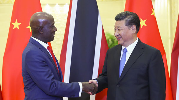 5月15日,國家主席習近平在北京人民大會堂會見特立尼達和多巴哥總理羅利。