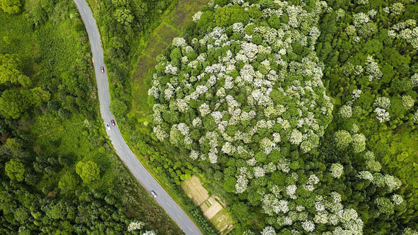 2018年5月1日,江西省新余市,游客車輛穿行于仙女湖區鳳凰灣野生泡桐林間。仙女湖區鳳凰灣辦事處于2012年被評為首批“國家級生態鄉鎮”,全境80%的林地為生態公益林。仙女湖區鳳凰灣辦事處于2012年被評為首批“國家級生態鄉鎮”,全境80%的林地為生態公益林。