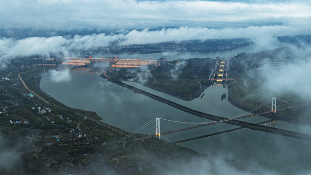這是4月13日拍攝的三峽工程全景圖。湖北宜昌4月13日迎來(lái)降雨。雨后長(zhǎng)江三峽云霧繚繞,如詩(shī)如畫(huà)。