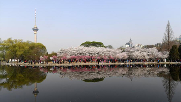 隨著氣溫的持續攀升,北京玉淵潭公園的近兩千株早櫻相繼綻放,比往年提前進入最佳觀賞期。