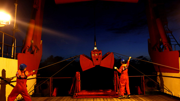 “科學(xué)”號(hào)的電視抓斗由我國(guó)自主研制,主要用于獲取深海海底的表層松散巖石、沉積物等樣品,可通過光纖實(shí)時(shí)傳回海底的視頻圖像,最大工作水深達(dá)6000米。