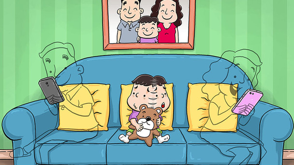 父母沉浸在手機(jī)社交網(wǎng)絡(luò)之中,在孩子面前變成了“隱形人”。