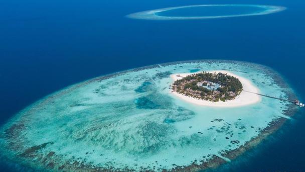 水是生命之源,是世界上最寶貴的資源之一。2018年世界水日宣傳主題是“借自然之力,護綠水青山”。這是2017年12月6日拍攝的馬爾代夫瓦賓法魯島和附近的珊瑚礁。