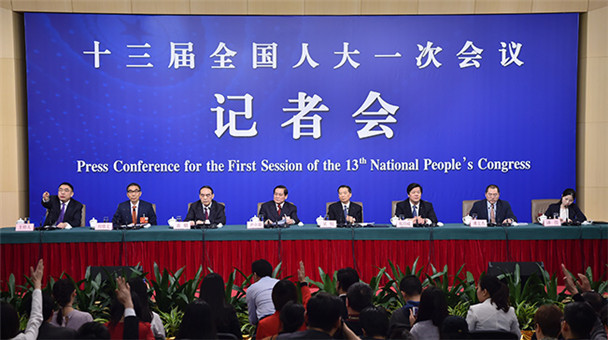 3月12日,十三屆全國人大一次會議新聞中心舉行記者會,邀請十二屆全國人大財經委副主任委員尹中卿、教科文衛委副主任委員吳恒、環資委副主任委員袁駟、內司委委員鄭功成,全國人大常委會預算工委副主任劉修文、常委會辦公廳秘書局巡視員傅文杰就“人大監督工作”相關問題回答中外記者提問。