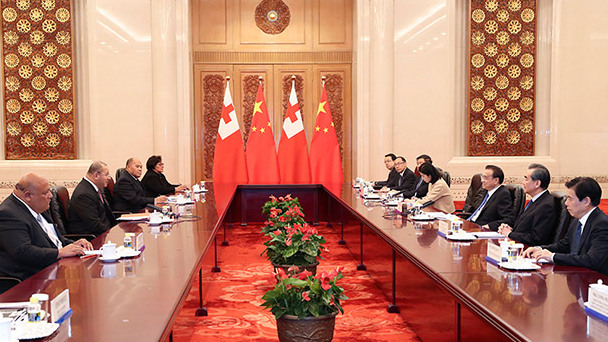 3月1日,國務(wù)院總理李克強在北京人民大會堂會見來華進行國事訪問的湯加國王圖普六世。